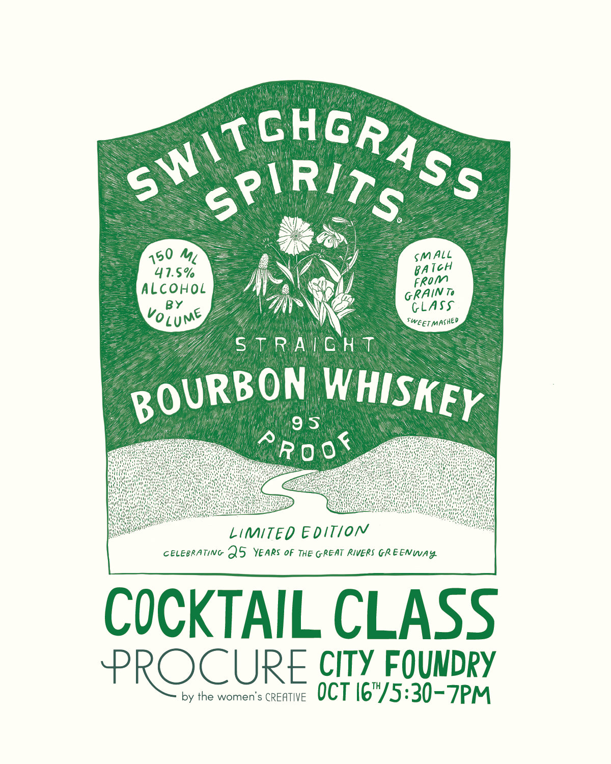 Work with an expert from Switchgrass Spirits to learn about the world of whiskey and gain instruction and hands on practice creating classic cocktails. Learn to use bartending tools and techniques as you practice making and sipping two seasonal cocktails. All ingredients and tools provided for two drinks. 12 spaces available.